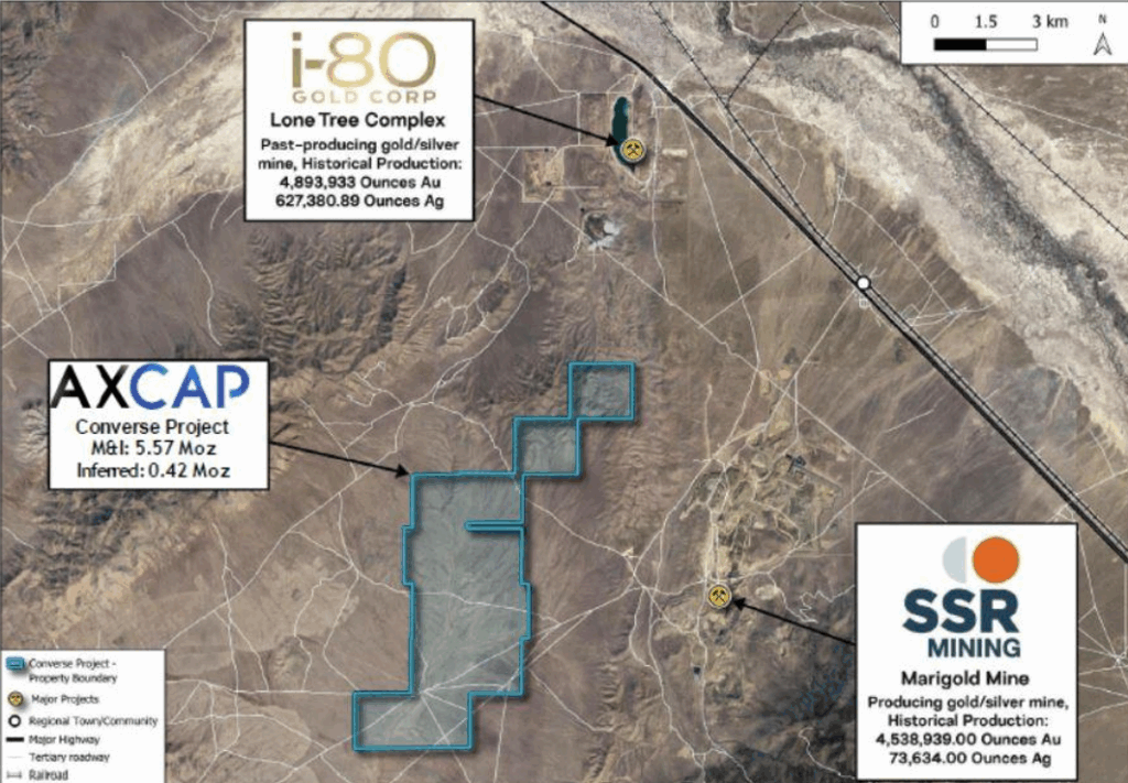 Converse ist die größte unerschlossene Goldlagerstätte in Nevada, die sich noch nicht im Besitz eines Majors befindet. Mit mehr als 1,24 Millionen Unzen oberflächennahen Oxidmaterials und einem neuen Bohrprogramm von 5.000 Metern, das derzeit durchgeführt wird, erschließt AXCAP eine Ressource, deren Goldgehalt mit dem der nahe gelegenen produzierenden Minen vergleichbar ist.